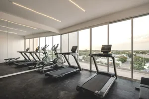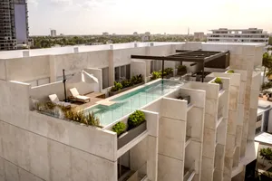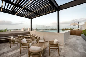 - Deck en Rooftop con alberca, gimnasio, área de asadores, sky bar, área de camastros y gimnasio.